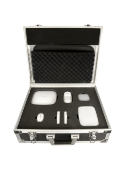 El maletín esta preparado para realizar una demostración del sistema de intrusión Ajax en cualquier lugar, solo necesitarás de una tarjeta SIM para dotar de conexión a internet al Hub, el cerebro del sistema y un smartphone para poder utilizar la APP Ajax Systems Security y mostrar al cliente las características principales del sistema de alarma que revoluciona Europa: uso de la App sencillo e intuitivo, máxima capacidad de configuración y control por parte del instalador inalámbrico.