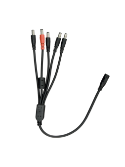 Dispone de una entrada macho de alimentación estándar y 5 salidas hembra de alimentación estándar. Podrá así alimentar hasta 5 cámaras (o bien otros equipos) conectadas a su salida, haciendo uso de una única fuente de alimentación conectada a su entrada.
