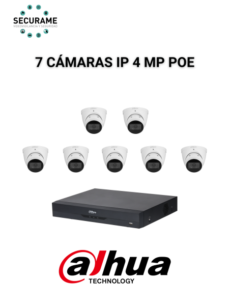 Kit videovigilancia 7 cámaras IP Dahua 4MP POE disco duro 2Tb