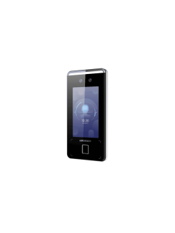 Terminal Hikvision autónomo de control de acceso con reconocimiento facial 20.000 caras. Pantalla táctil LCD de 7”. Con lector de huella y lector tarjeta Mifare 1. Wifi.